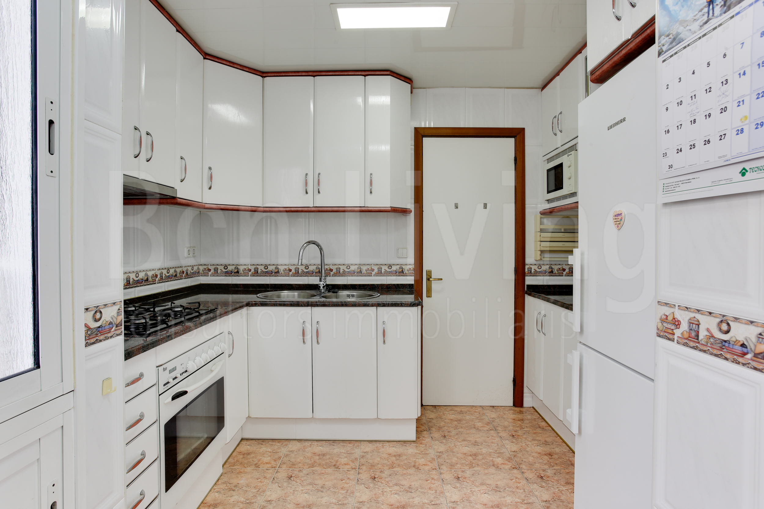 La cocina está equipada con lavadora, nevera, horno y microondas lista para entrar a vivir.